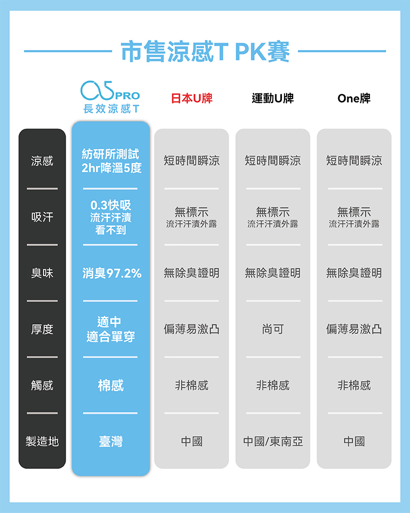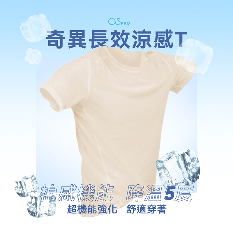 二氧化鈦具有熱阻隔和殺菌的雙效功能,被廣泛使用於有 200 多度溫差的 NASA 太空站中,長達一年的研發與測試,才終於開發出這款獨家兼具瞬間和長效涼感的「二氧化鈦同心圓複合紗」作為奇異長效涼感T材料。